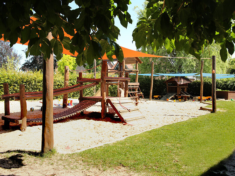 Unser großzügiges Außenspielgelände bietet viel Raum zum freien Spiel, Toben und Erkunden. Die Kinder können klettern, rutschen, schaukeln, im Sand spielen oder mit verschiedenen Fahrzeugen unterwegs sein. Dabei werden nicht nur Motorik und Koordination geschult- auch Fantasie, soziales Miteinander und Selbstständigkeit wachsen mit.